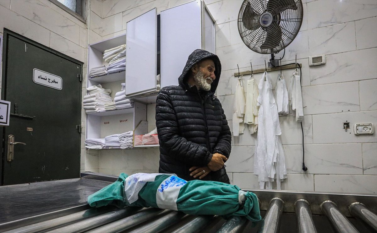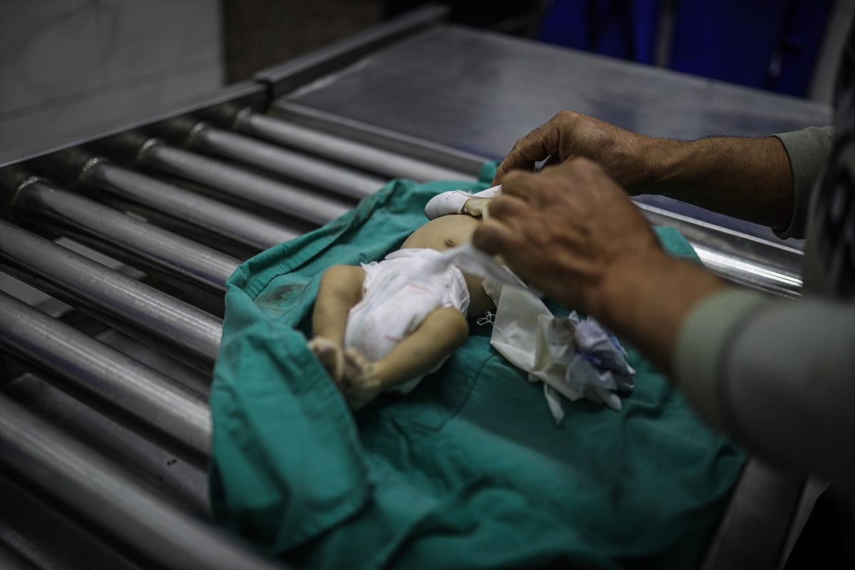 Gazze’li bebeğin naaşı, cenaze işlemleri için Gazze kentindeki Şifa Hastanesi’ne getirildi.