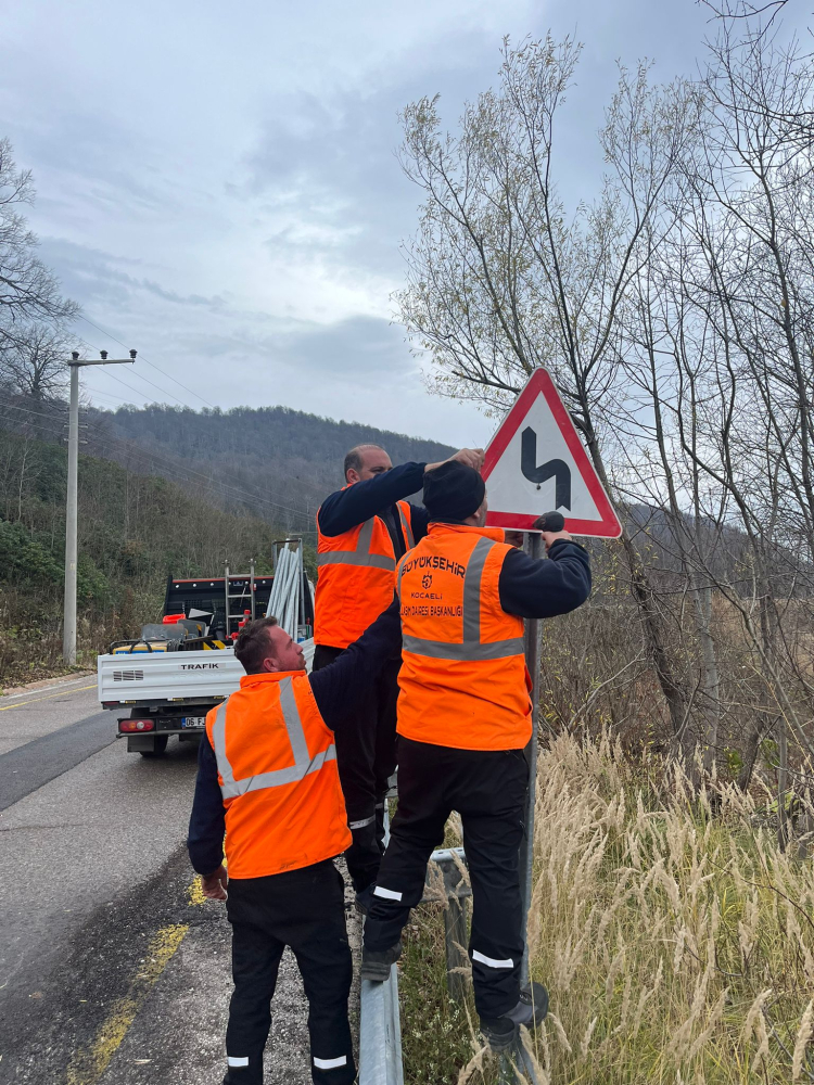 Kocaeli Büyükşehir Belediyesi, Kartepe zirve yolunda kış aylarında güvenli ve kesintisiz ulaşımı sağlamak için levha ve kar direği yenileme çalışmalarını gerçekleştirdi.