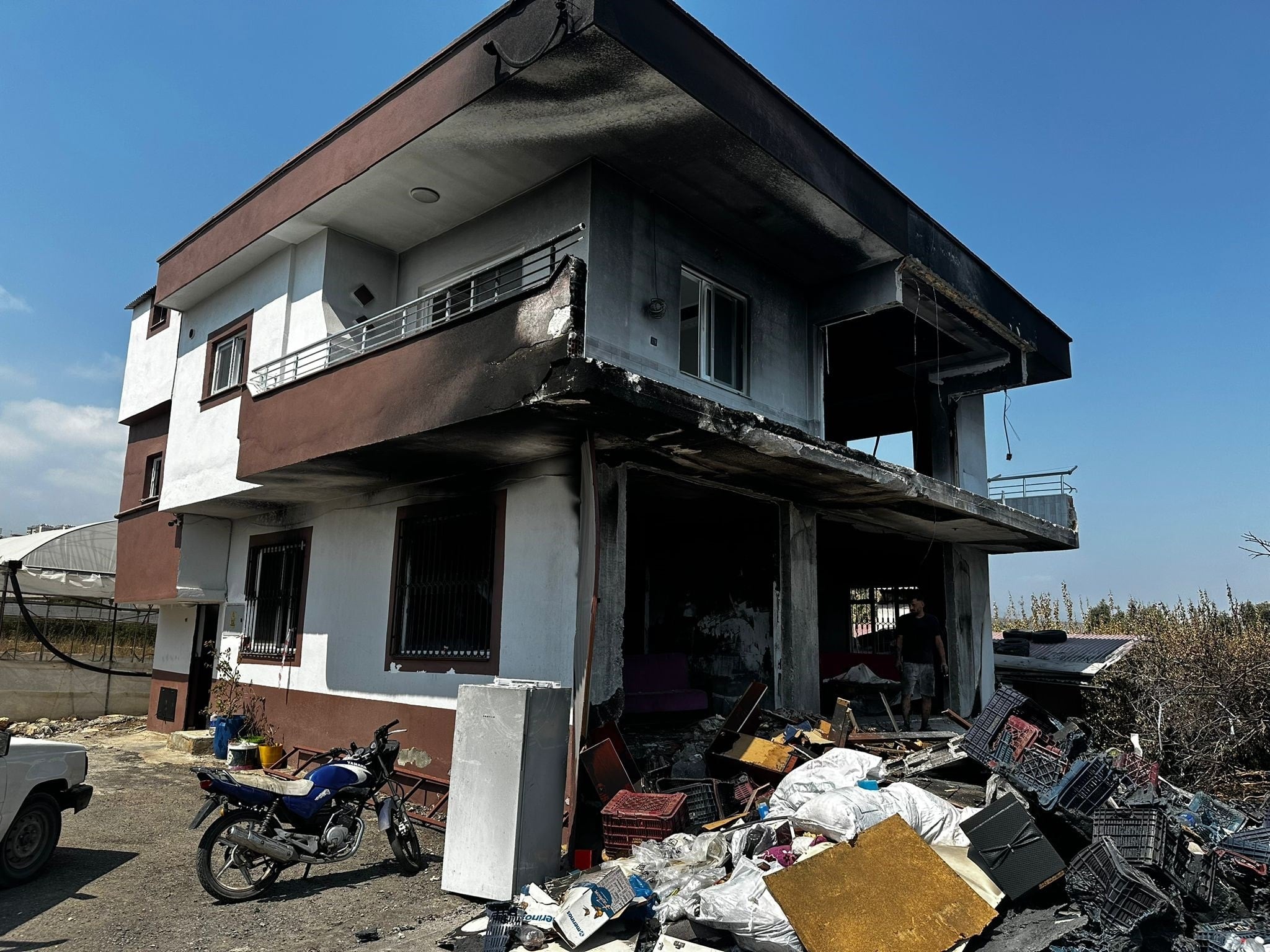 Olay, 27 Ağustos 2025’te Koyuncu Mahallesi Töre Sokak’ta meydana geldi. Çiftçi Ahmet Özden ile eşi Şule Özden, oğulları Salih ile gelinleri Şerife’nin düğünü için yaylaya gitti. Düğün başladıktan kısa bir süre sonra ailenin Erdemli’deki 2 katlı müstakil evinin deposunda yangın çıktı. Alevler hızla yayılarak depoyu ve bitişikteki evi sardı. Olay yerine sevk edilen 10 itfaiye ekibinin uzun süren müdahalesi sonucu yangın söndürüldü. Ev ve depoda yaklaşık 10 milyon liralık zarar meydana geldiği ileri sürüldü. Evin Özden ailesiyle aralarında tarla husumeti olan komşuları Ahmet İnce’nin tiner dökerek yaktığı ortaya çıktı. Gözaltına alınan İnce, suçunu itiraf edince tutuklandı.
