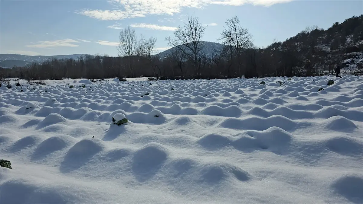 Eskipazar Lahanası Kar Altında Hasat Ediliyor